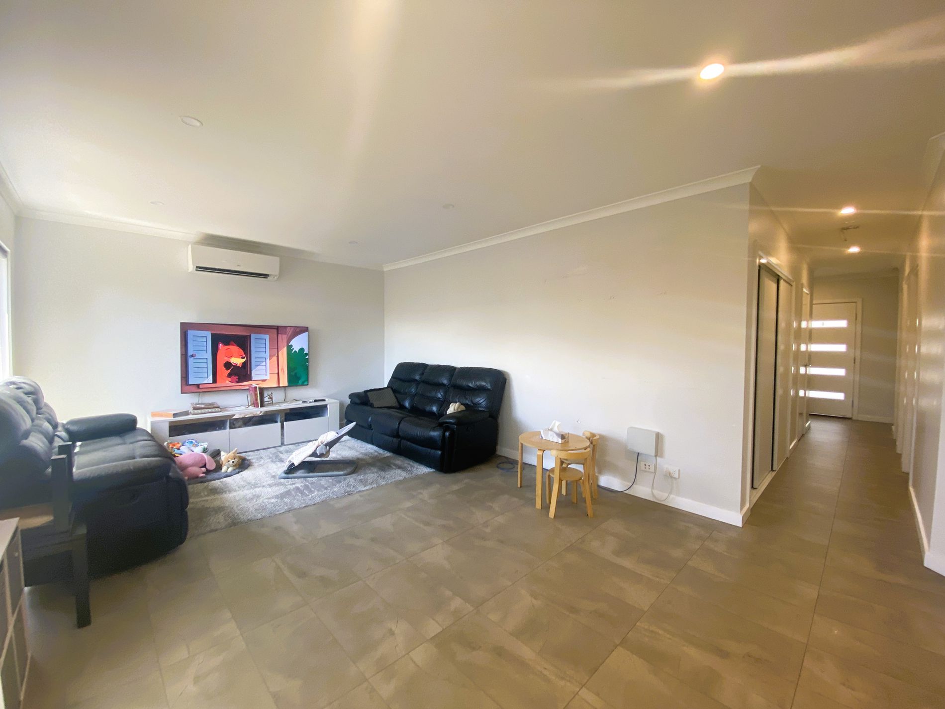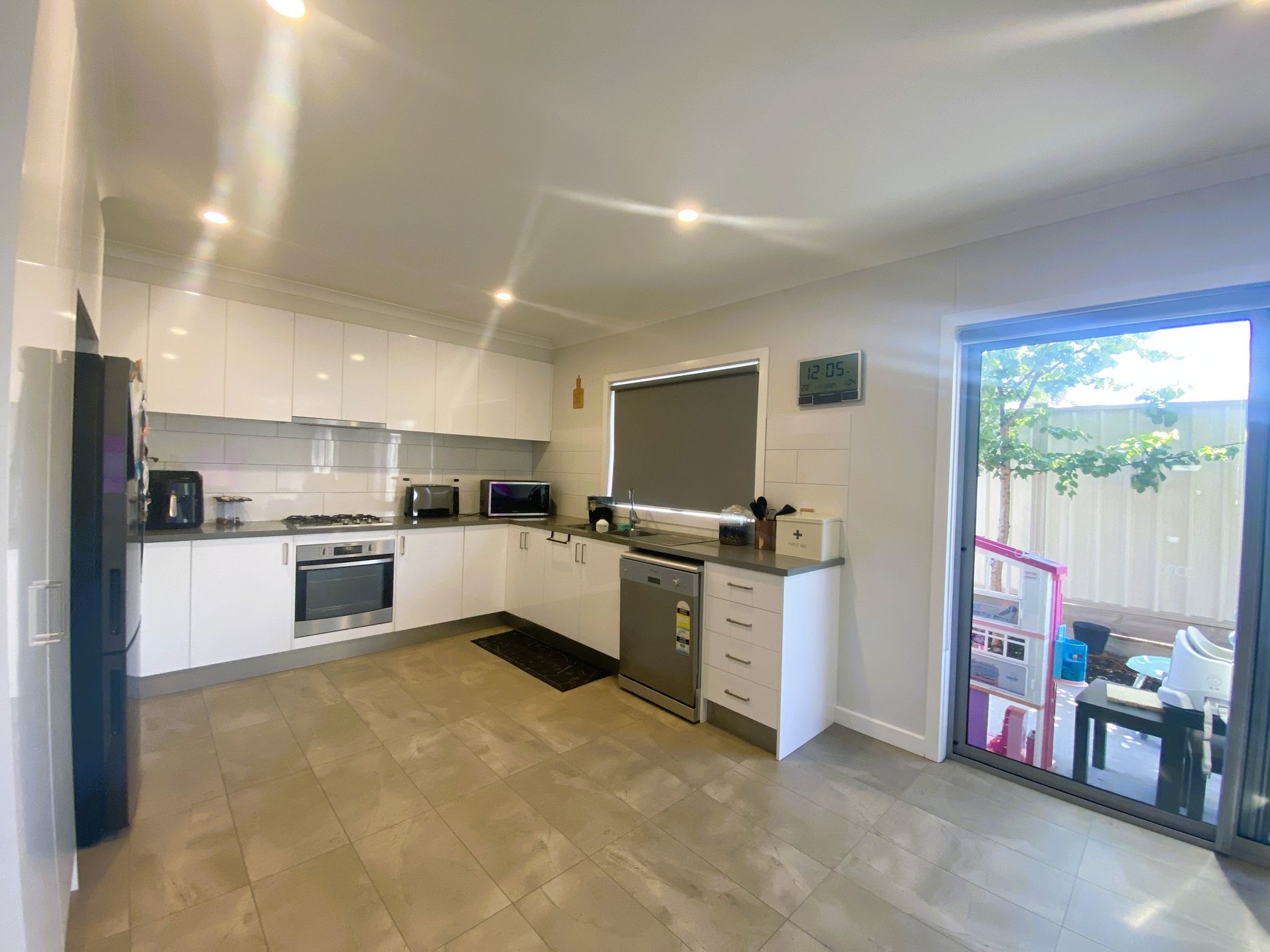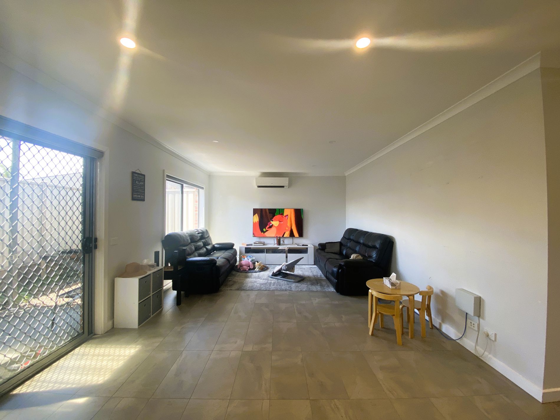 - Open plan kitchen, living and dining area