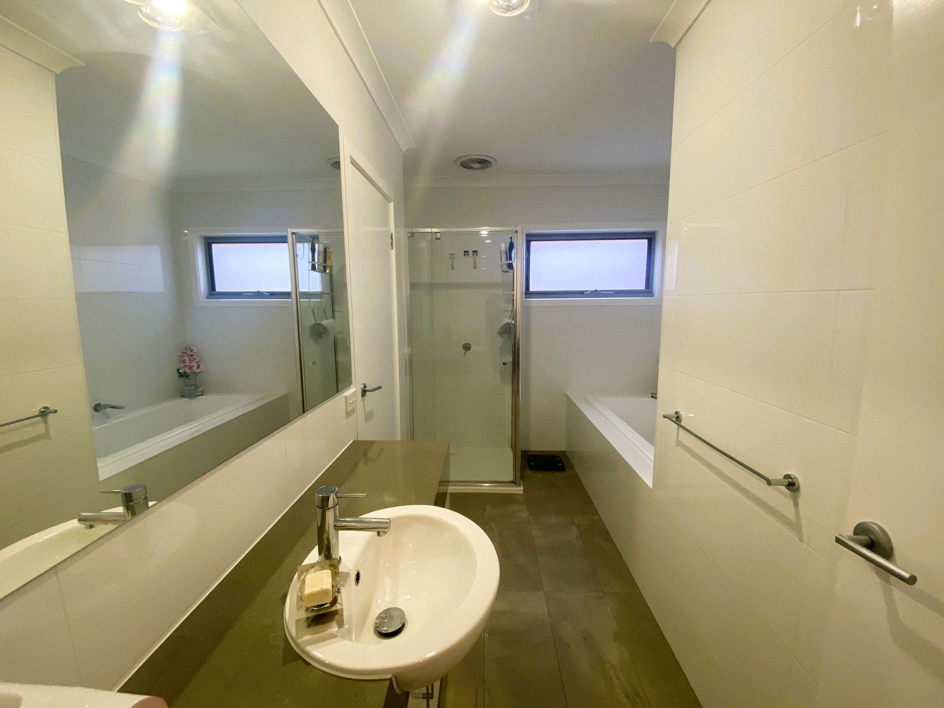- Central bathroom with a bath