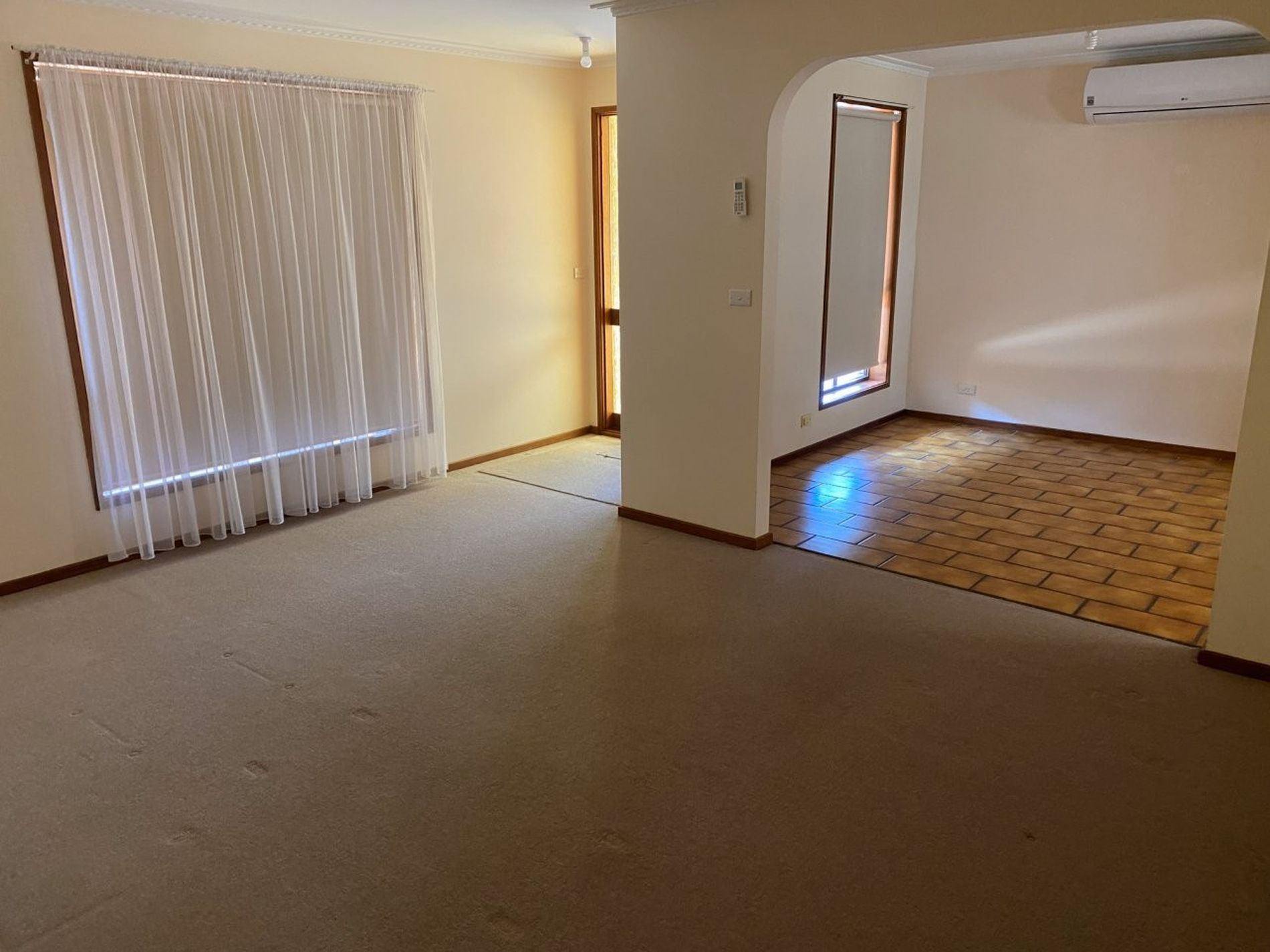 Large open plan home with carpets in lounge and bedrooms.