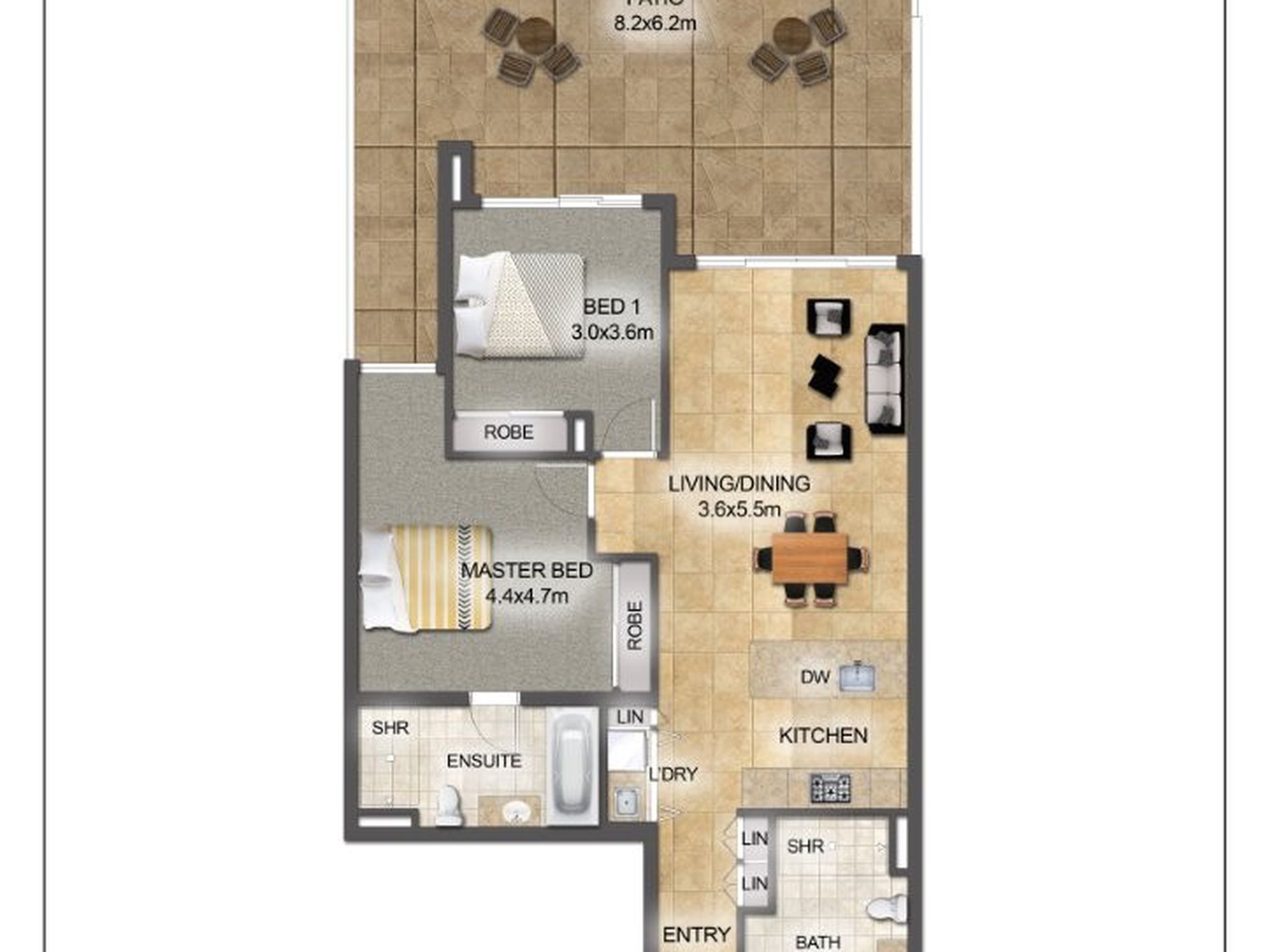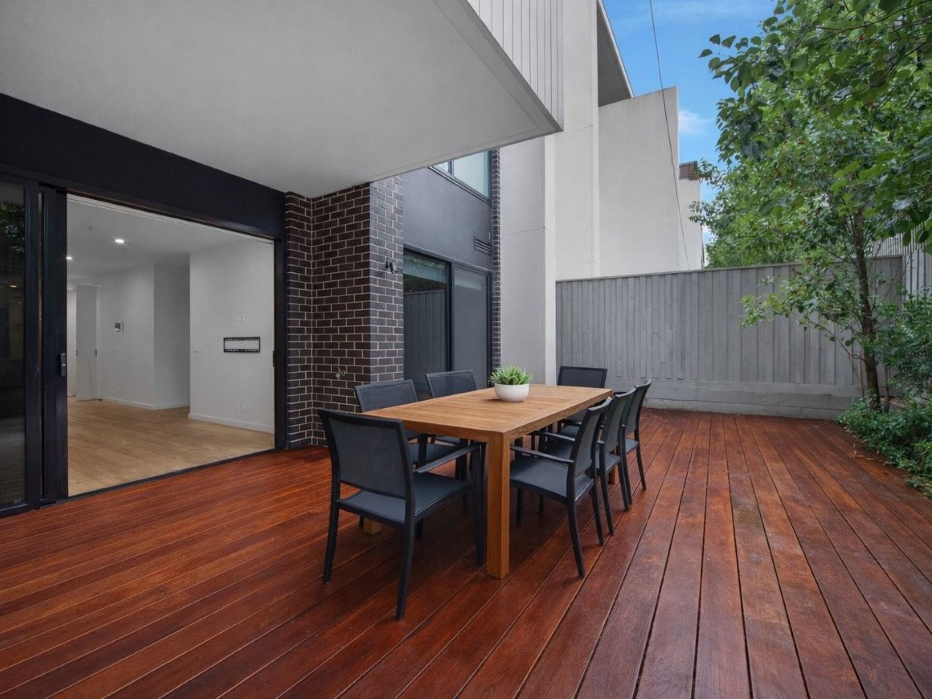 - Ground-floor design with private courtyard and alfresco deck.