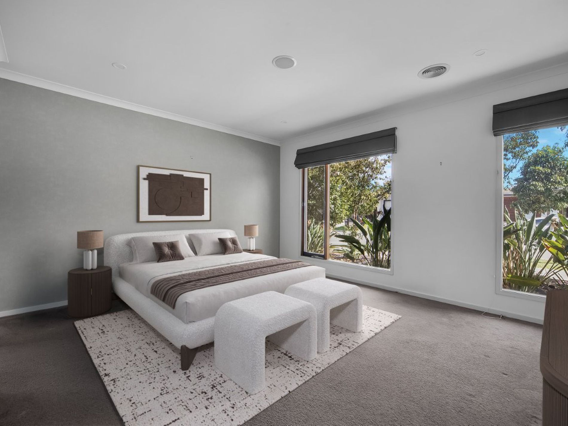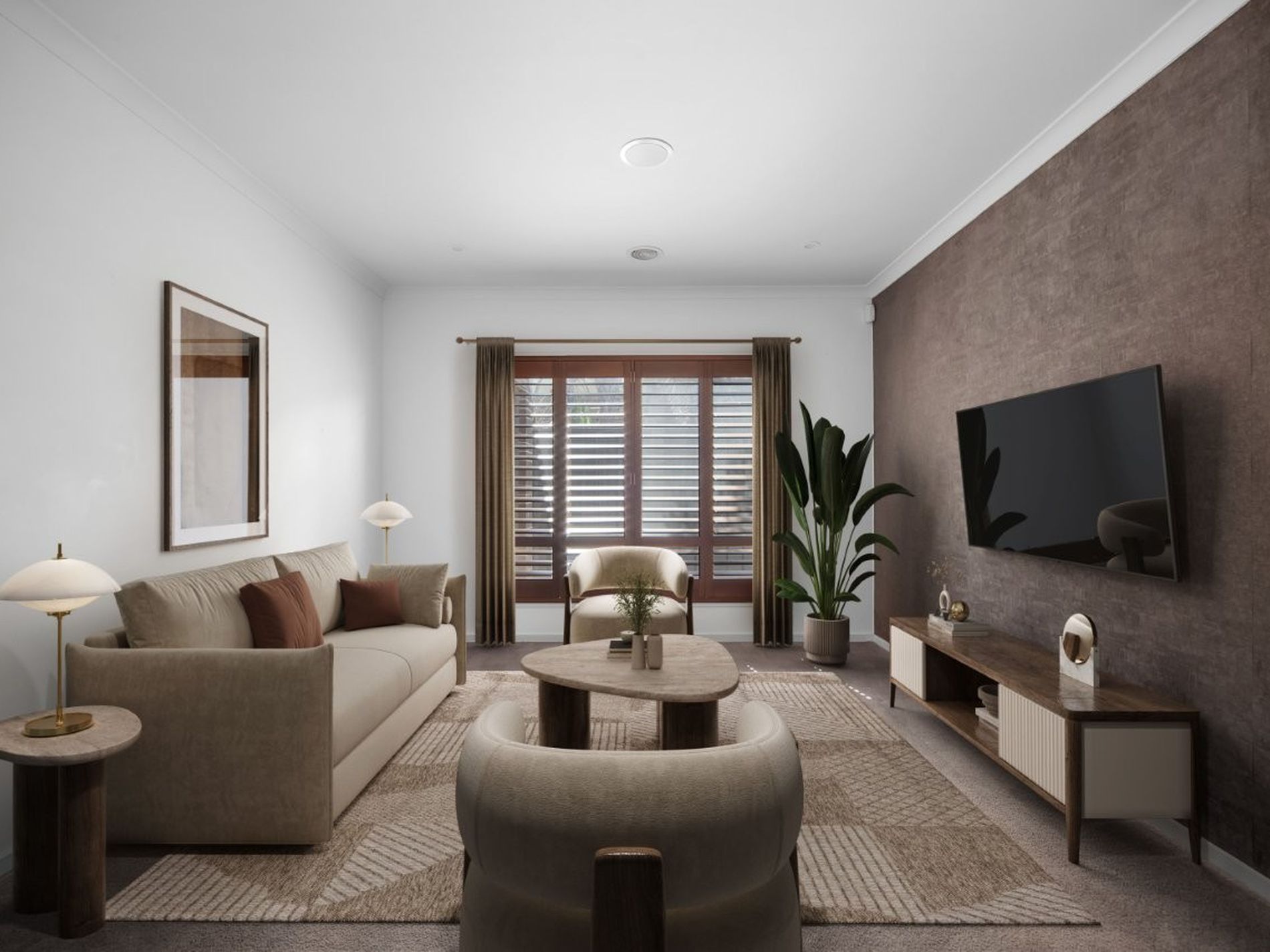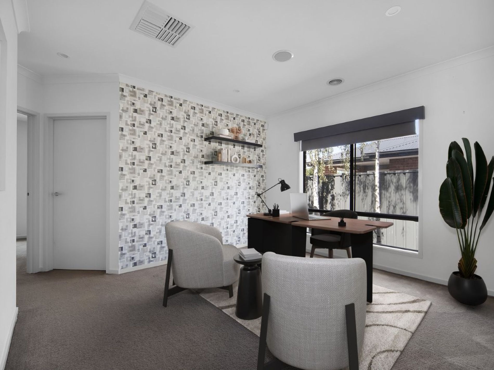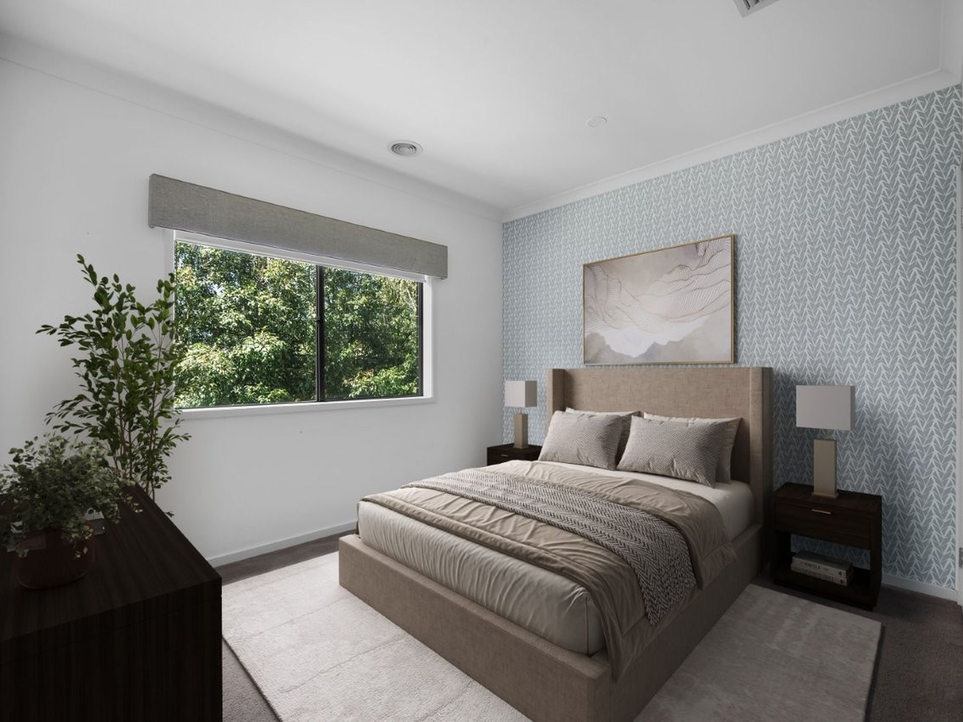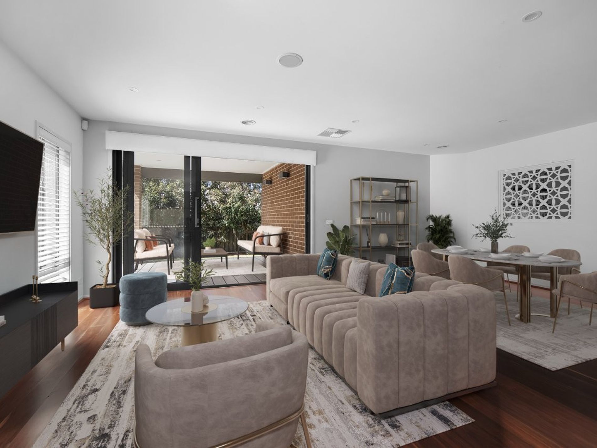 An extended living area from the kitchen overlooks the undercover alfresco that interfaces nicely for entertaining guests and there is a nice backdrop of lined silver birch trees for a touch of nature.