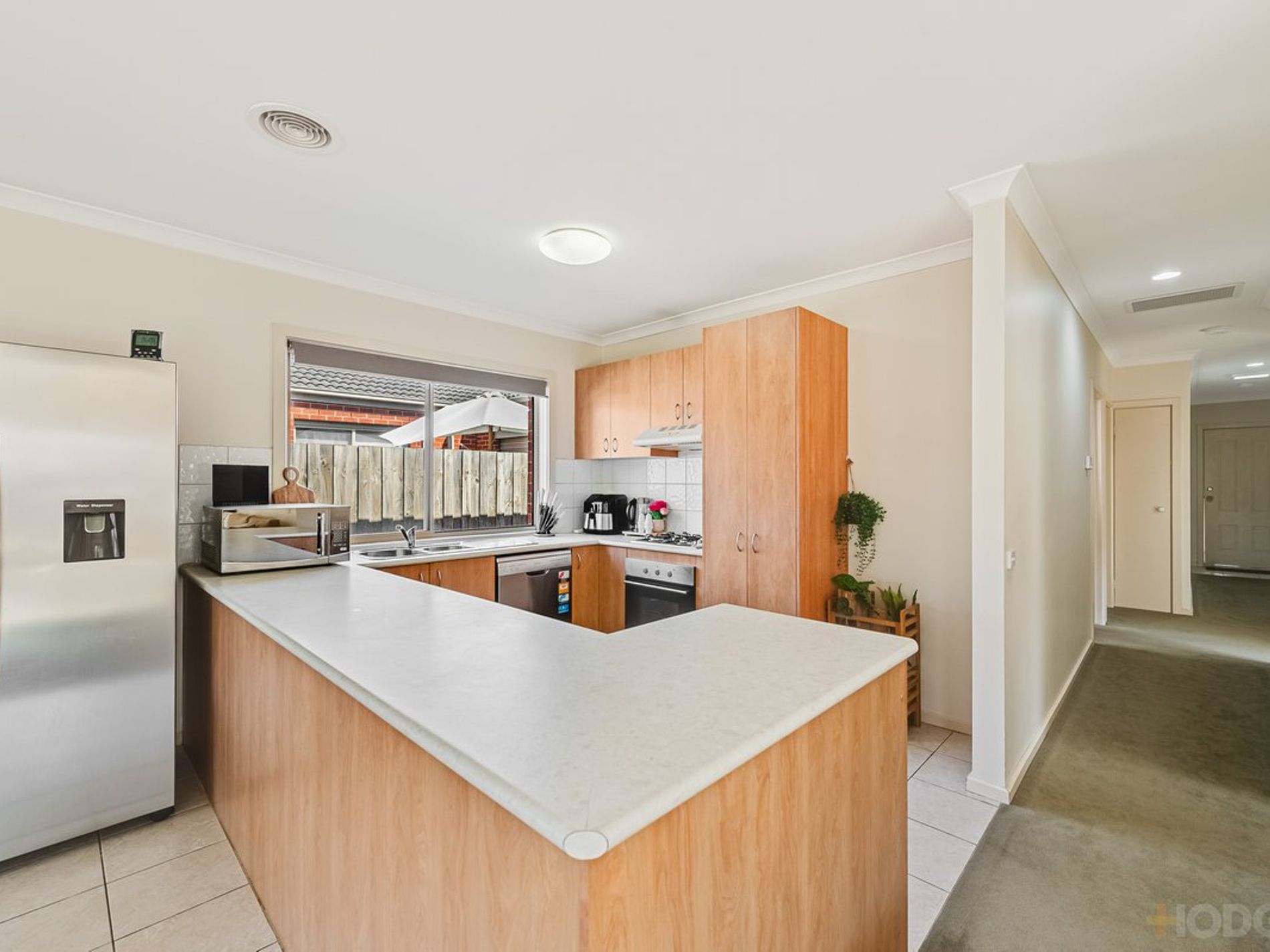 Enjoy a generous open-plan living and meals area, flowing seamlessly into a modern wrap-around kitchen equipped with a dishwasher, 600mm oven, and gas cooktop—perfect for easy entertaining and family living. Downlights throughout enhance the home’s contemporary feel.