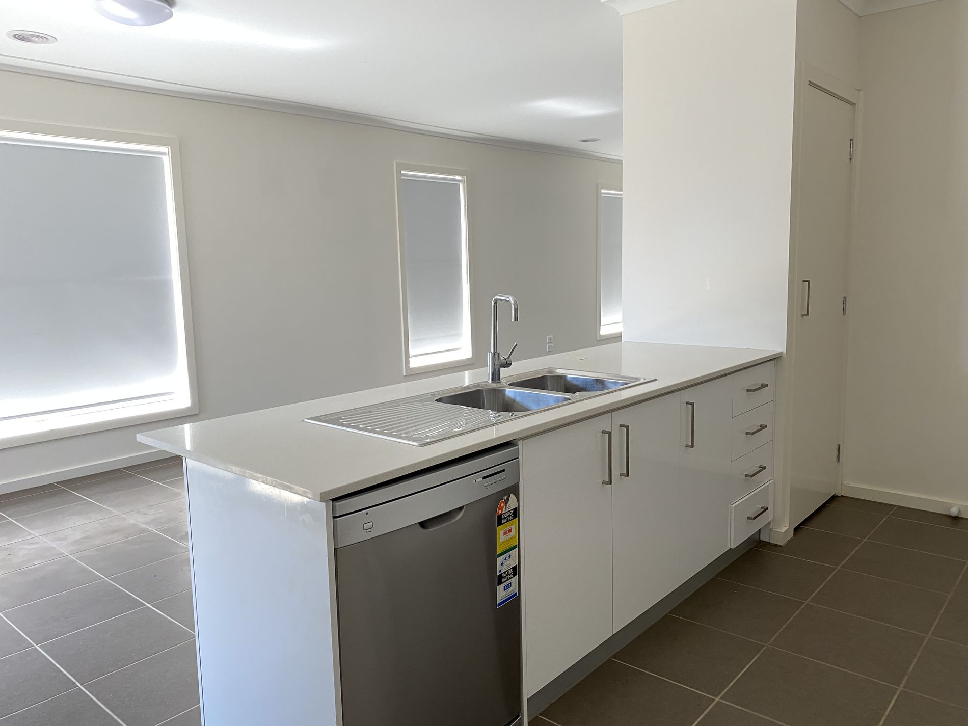 - Modern kitchen with 900mm stainless steel appliances, dishwasher, large fridge space and stone benchtops